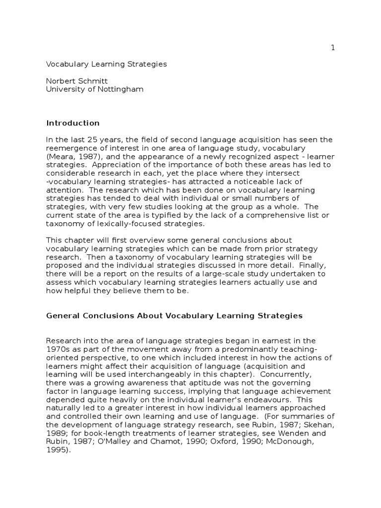 Schmitt N 1997 Vocabulary Learning Strategies In Schmitt N And Mccarthy M Eds Vocabulary Description Acquisition And Pedagogy Cambridge University Press 1 Vocabulary Second Language